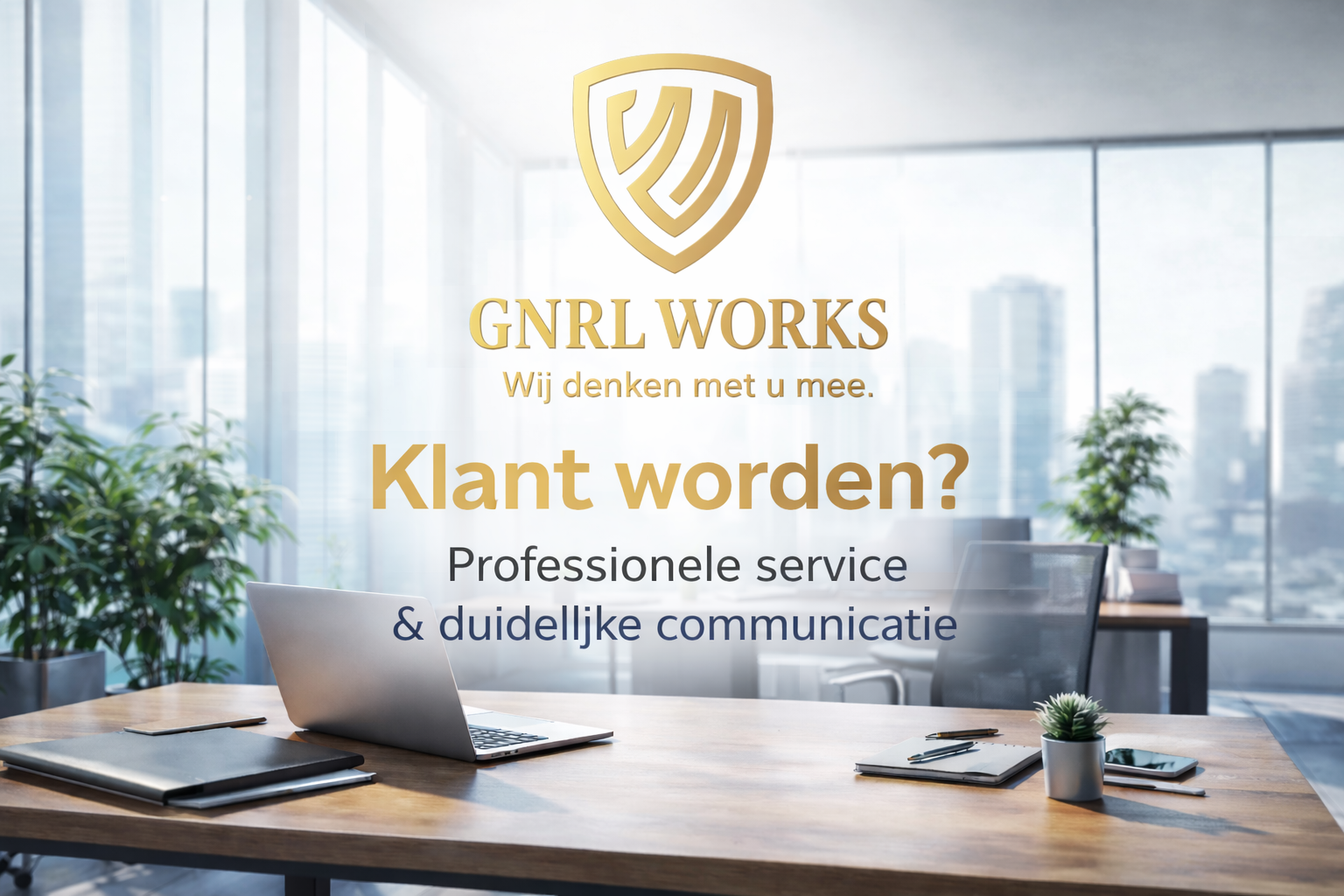 Welkom bij de klantenservice van GNRL Works. Hier vind je alle informatie en formulieren om snel en efficiënt geholpen te worden. Of je nu een nieuwe klant wilt worden of je bij ons team wilt aansluiten, wij hebben de middelen om je te ondersteunen.
